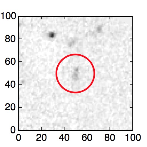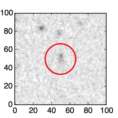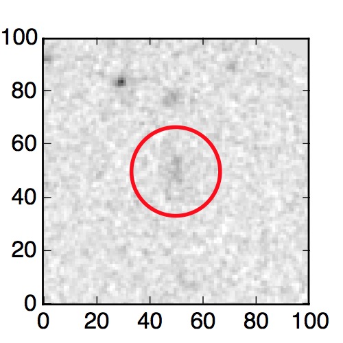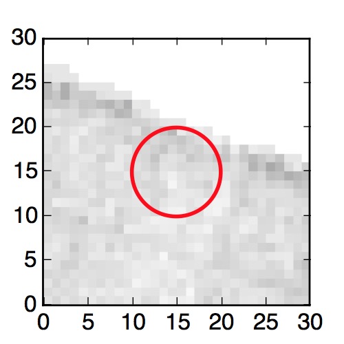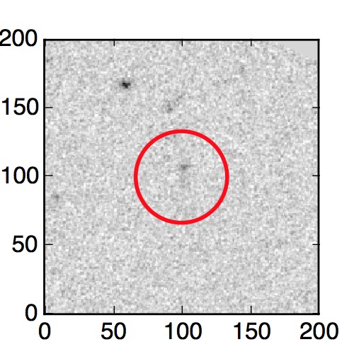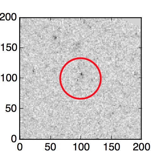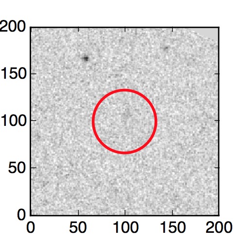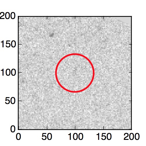The red circle in the various panels is 1" in radius. The images are 6"x6".