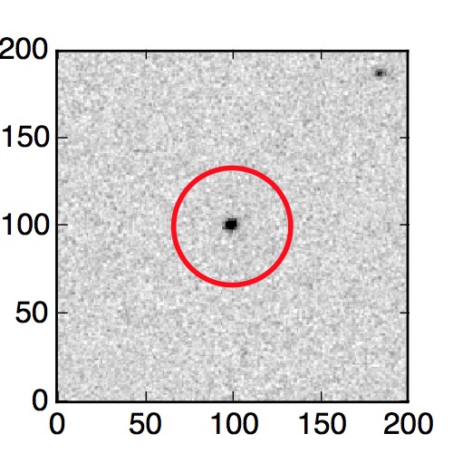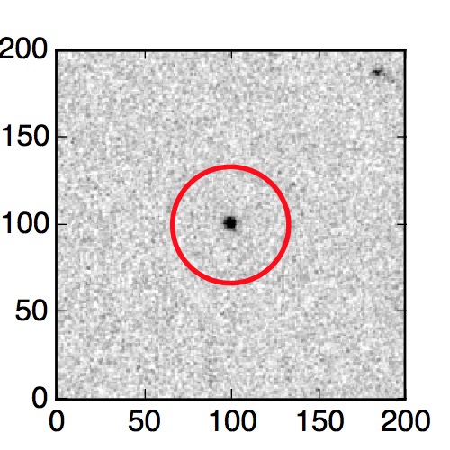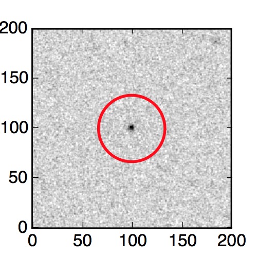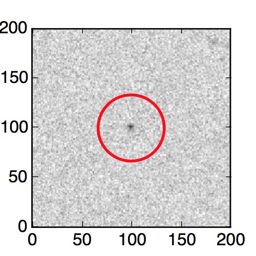 The red circle in the various panels is 1" in radius. The images are 6"x6".