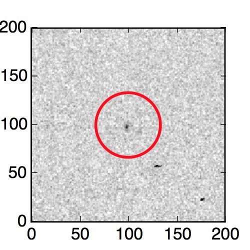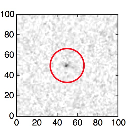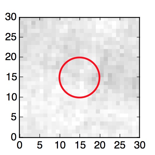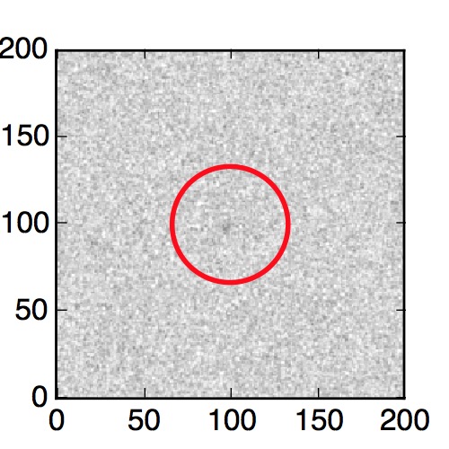 The red circle in the various panels is 1" in radius. The images are 6"x6".