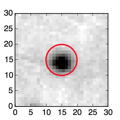 The red circle in the various panels is 1" in radius. The images are 6"x6".