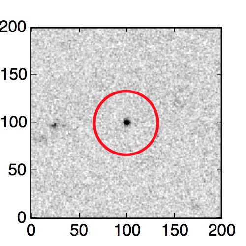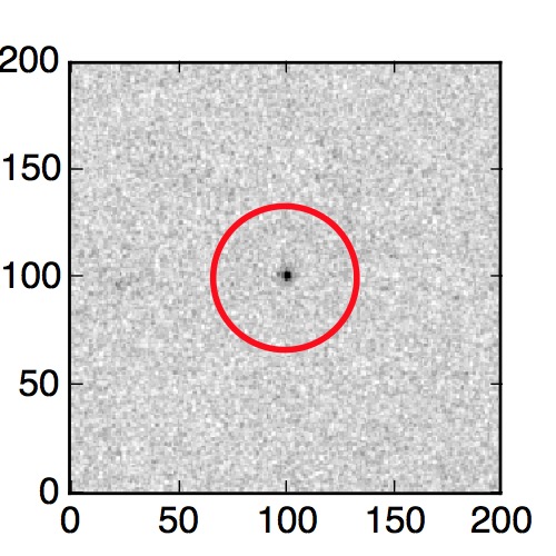 The red circle in the various panels is 1" in radius. The images are 6"x6".