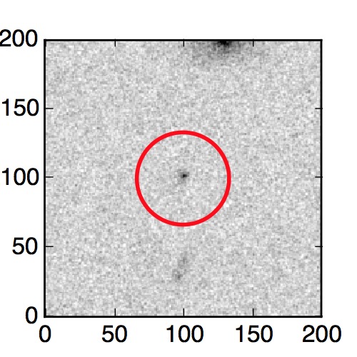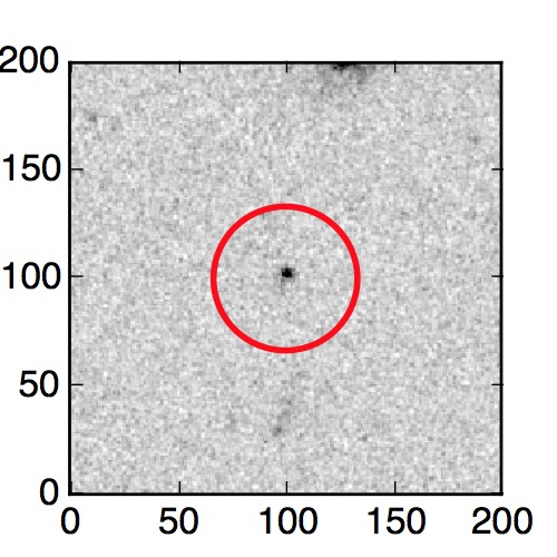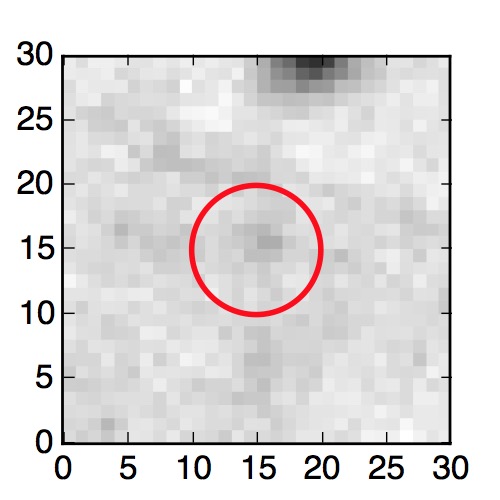 The red circle in the various panels is 1" in radius. The images are 6"x6".