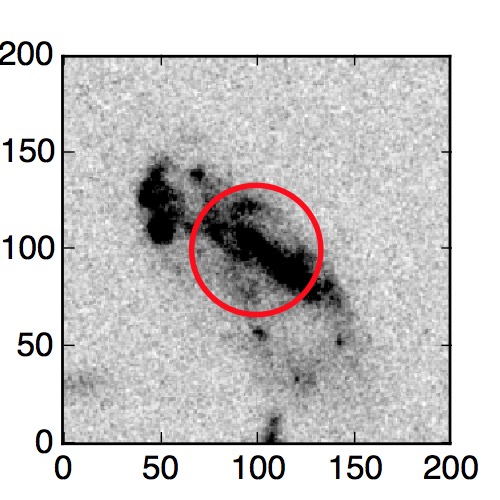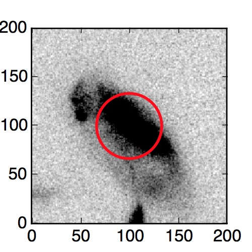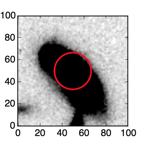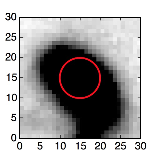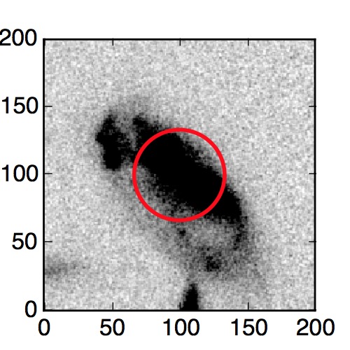 The red circle in the various panels is 1" in radius. The images are 6"x6".