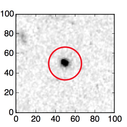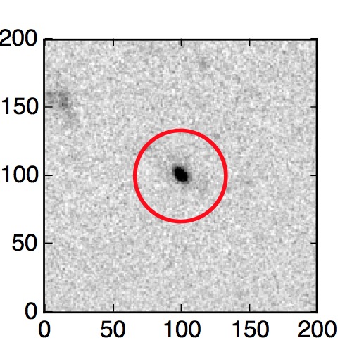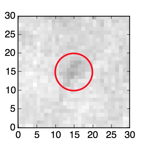 The red circle in the various panels is 1" in radius. The images are 6"x6".