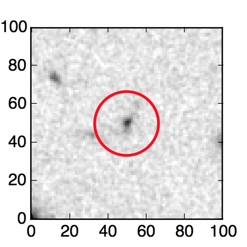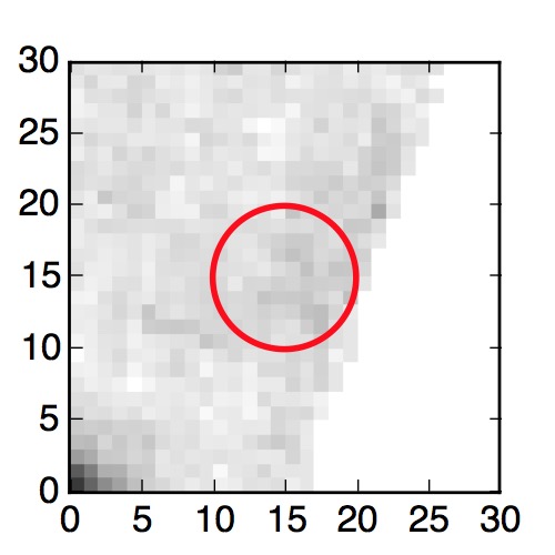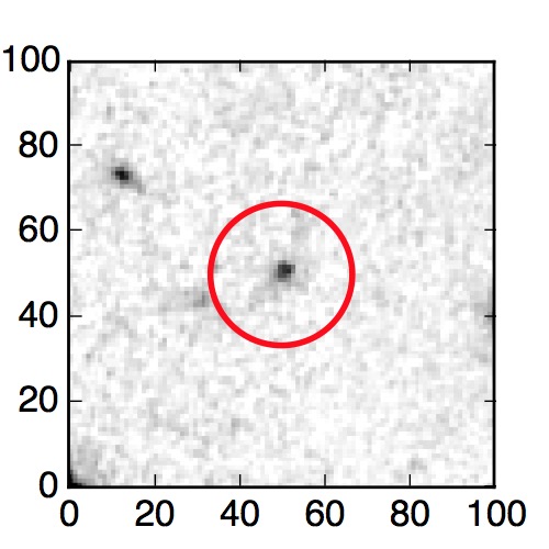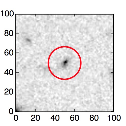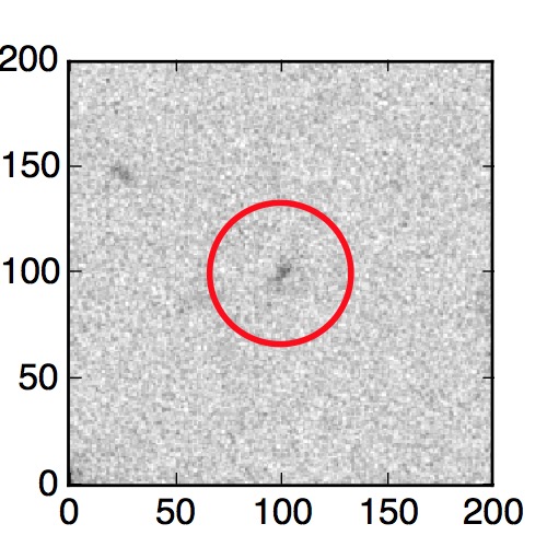 The red circle in the various panels is 1" in radius. The images are 6"x6".