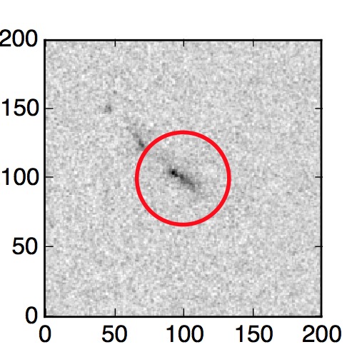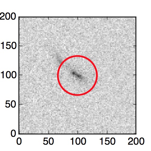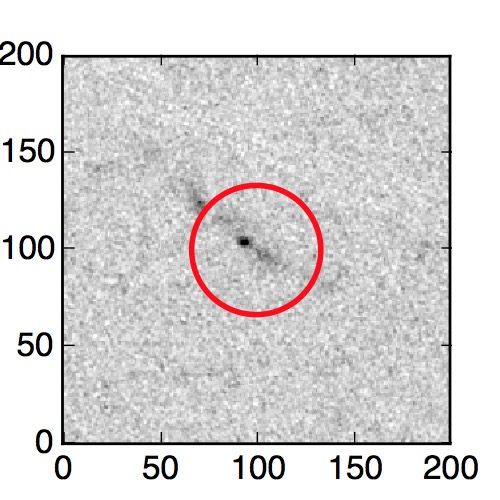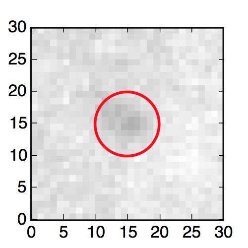 The red circle in the various panels is 1" in radius. The images are 6"x6".