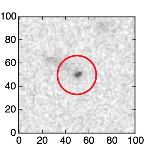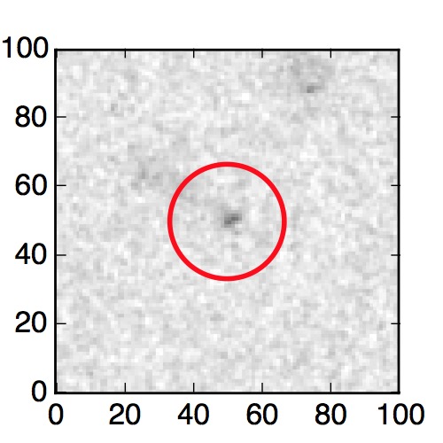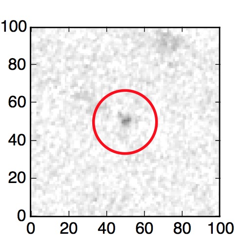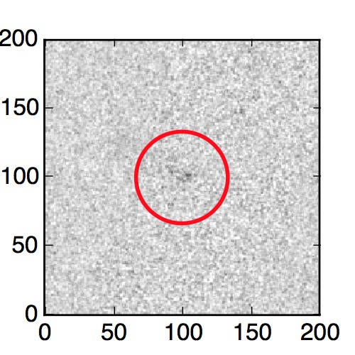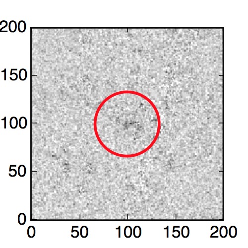 The red circle in the various panels is 1" in radius. The images are 6"x6".