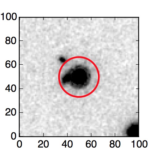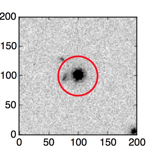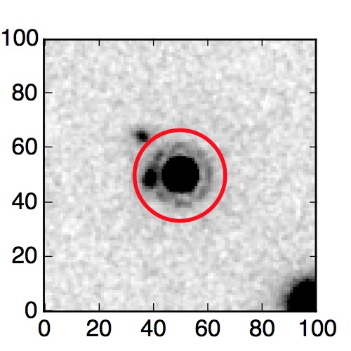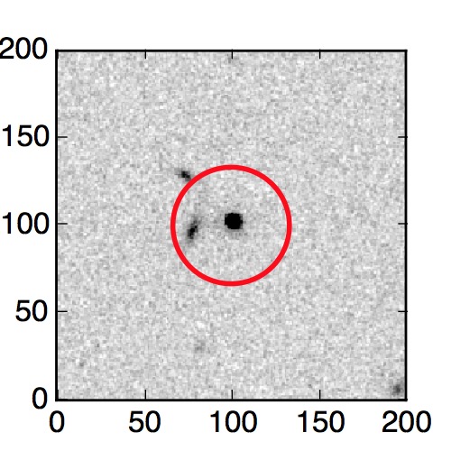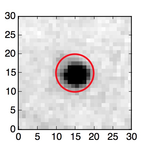 The red circle in the various panels is 1" in radius. The images are 6"x6".