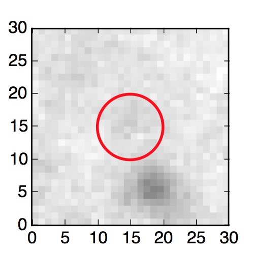 The red circle in the various panels is 1" in radius. The images are 6"x6".