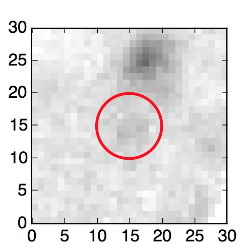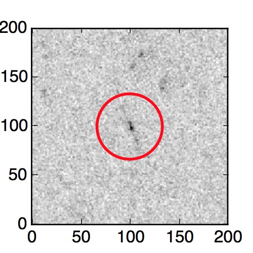 The red circle in the various panels is 1" in radius. The images are 6"x6".