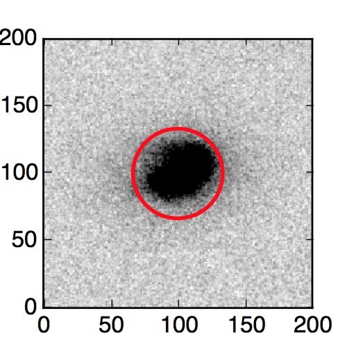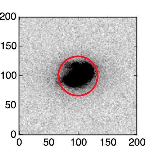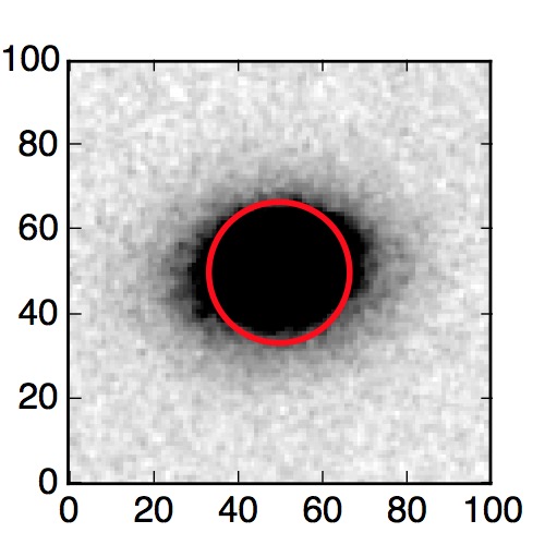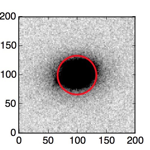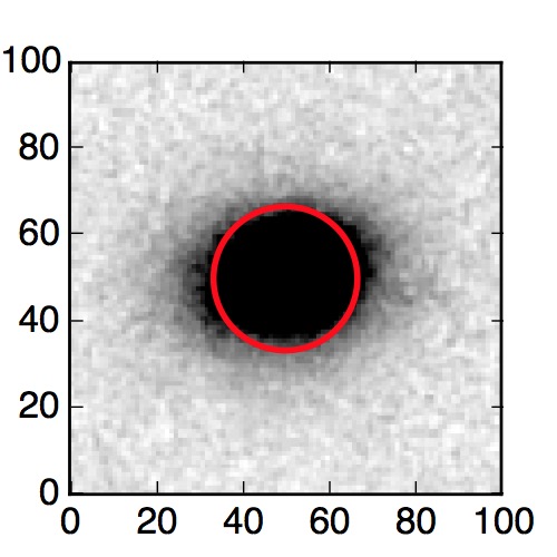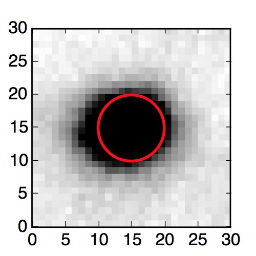 The red circle in the various panels is 1" in radius. The images are 6"x6".
