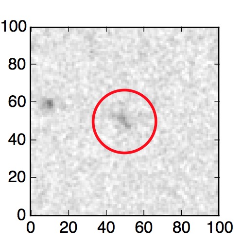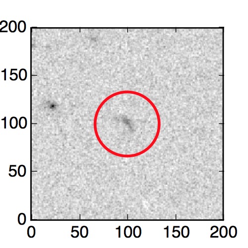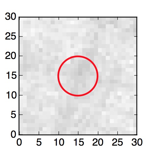 The red circle in the various panels is 1" in radius. The images are 6"x6".