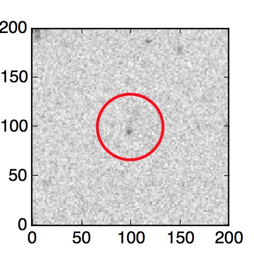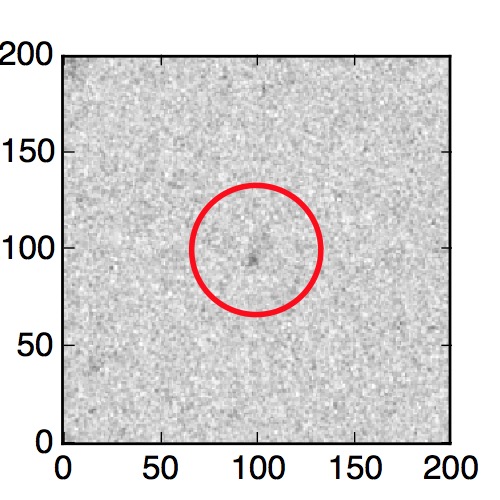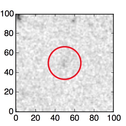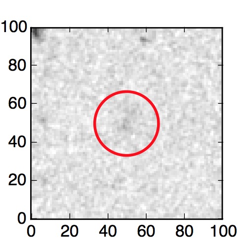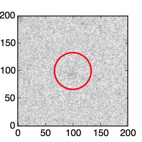 The red circle in the various panels is 1" in radius. The images are 6"x6".