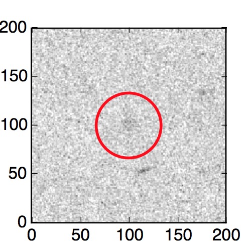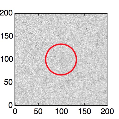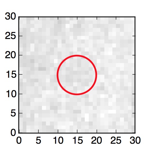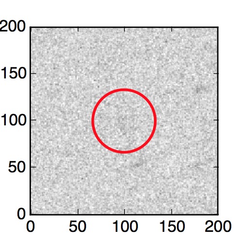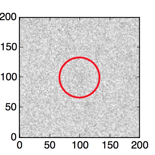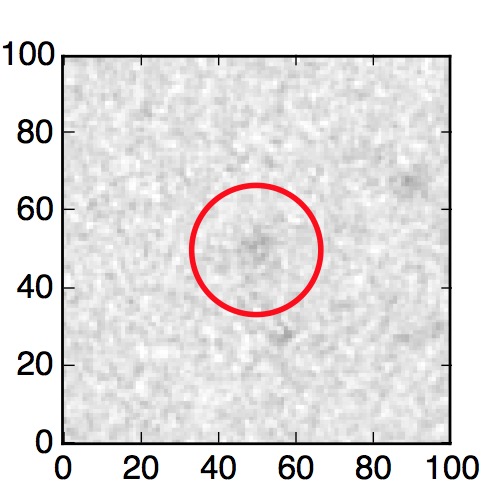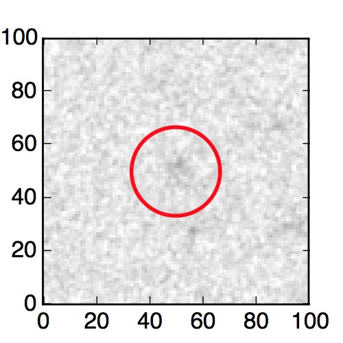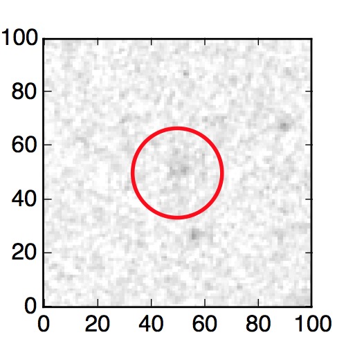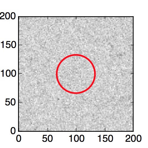 The red circle in the various panels is 1" in radius. The images are 6"x6".