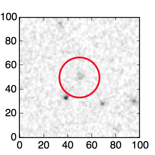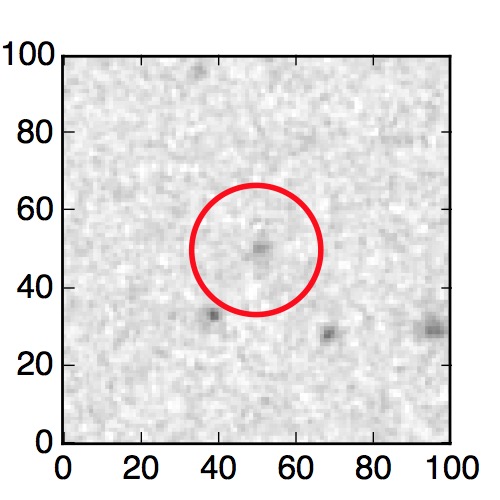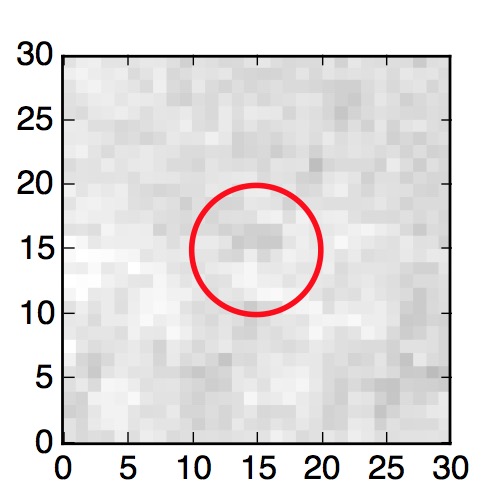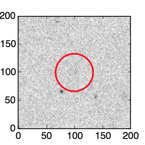 The red circle in the various panels is 1" in radius. The images are 6"x6".