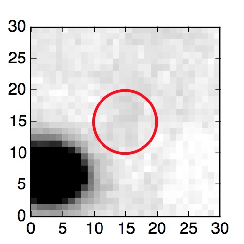 The red circle in the various panels is 1" in radius. The images are 6"x6".