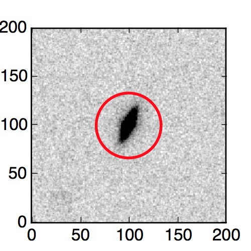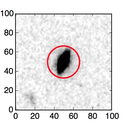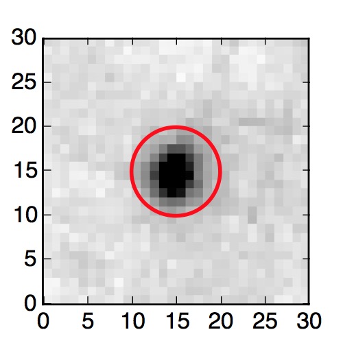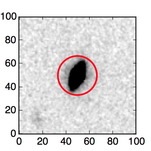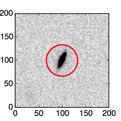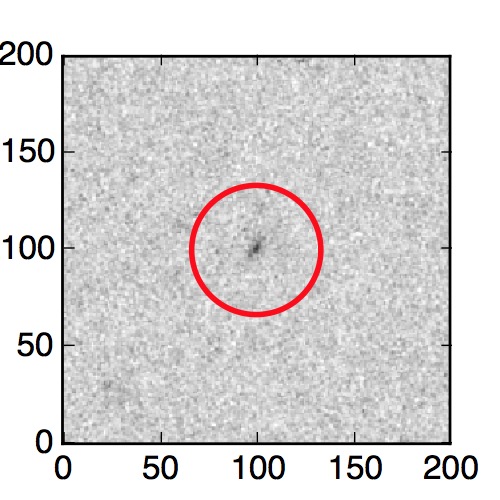 The red circle in the various panels is 1" in radius. The images are 6"x6".