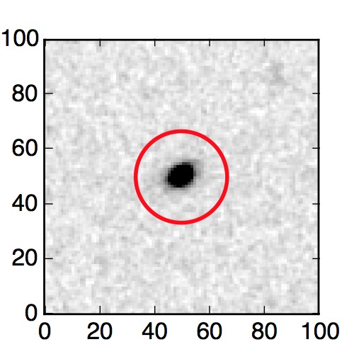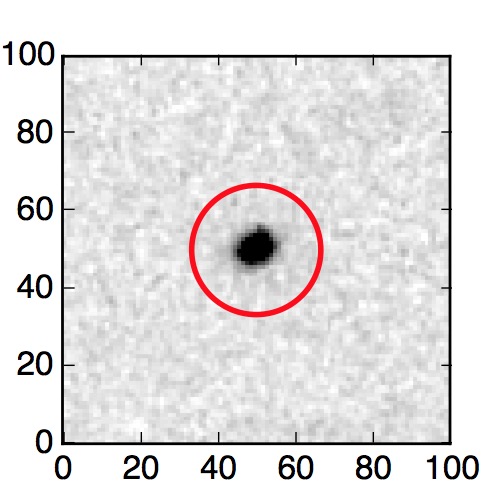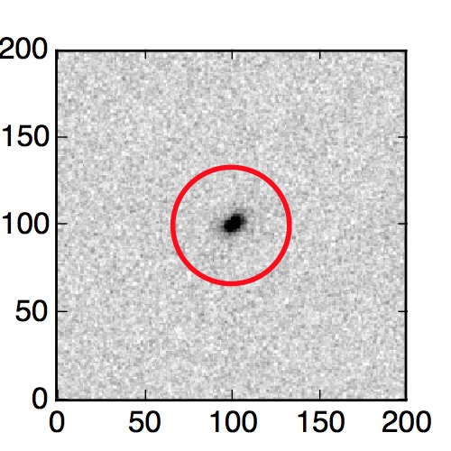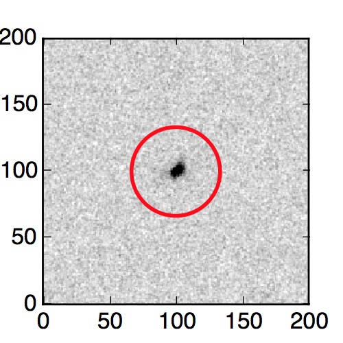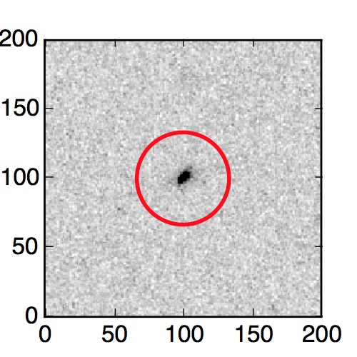 The red circle in the various panels is 1" in radius. The images are 6"x6".