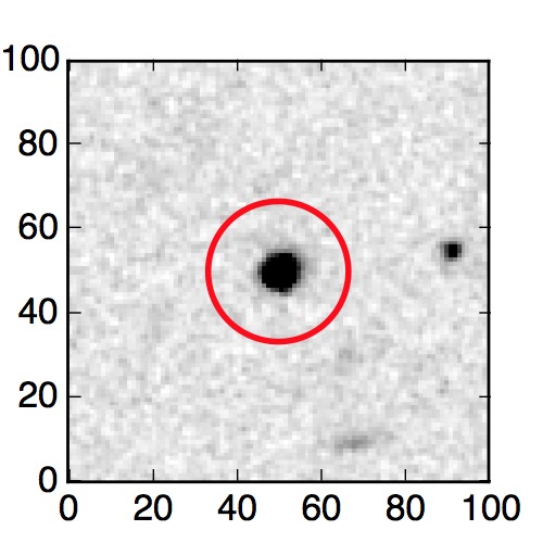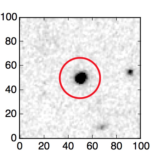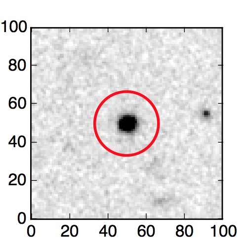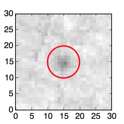 The red circle in the various panels is 1" in radius. The images are 6"x6".