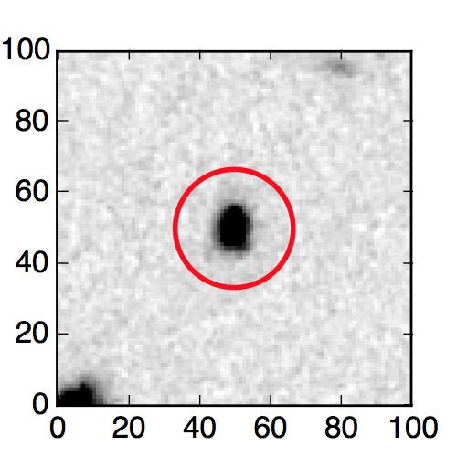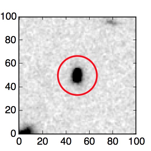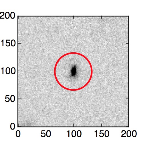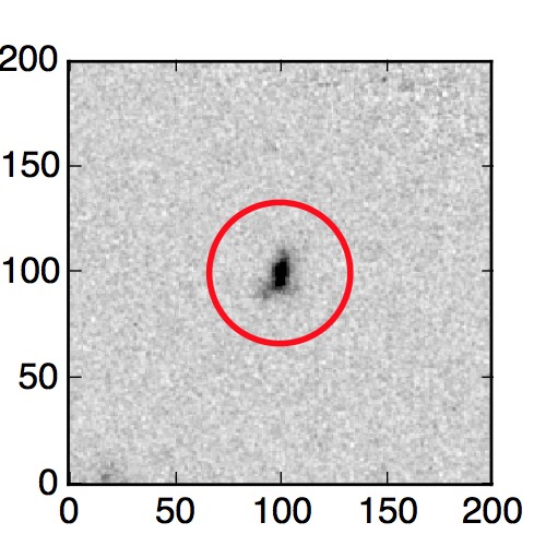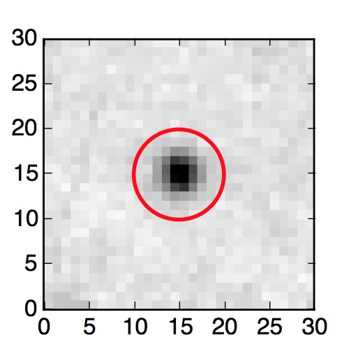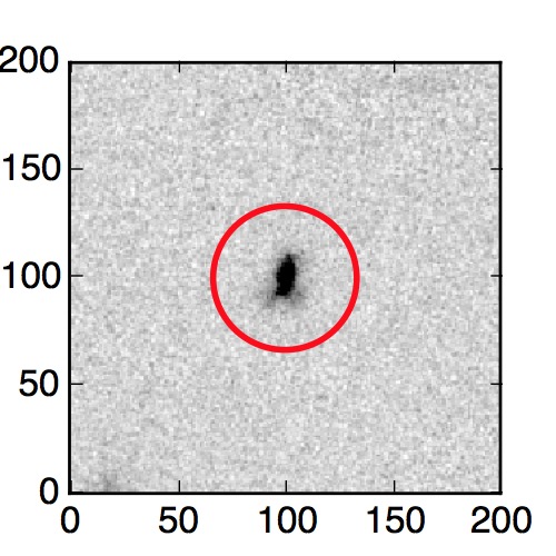 The red circle in the various panels is 1" in radius. The images are 6"x6".