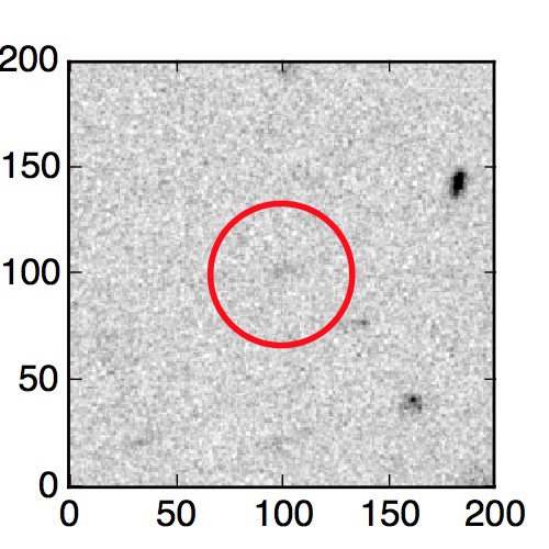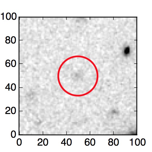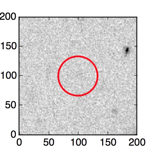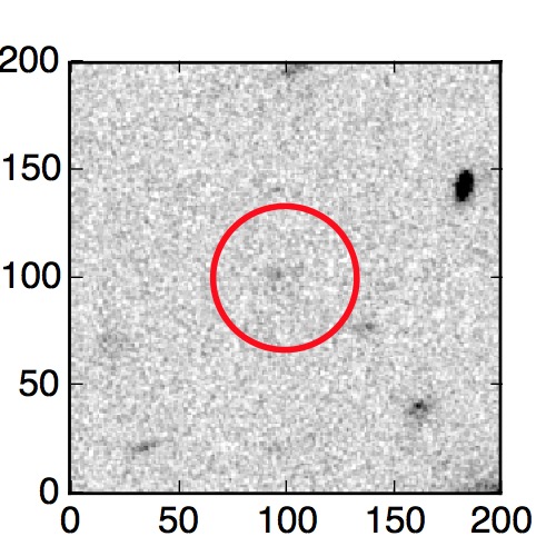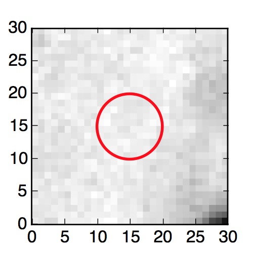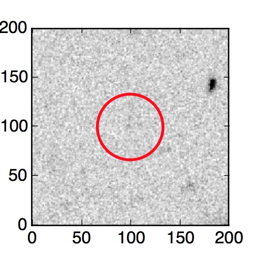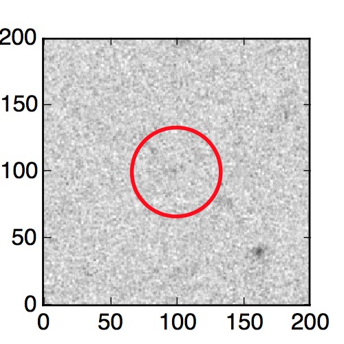 The red circle in the various panels is 1" in radius. The images are 6"x6".