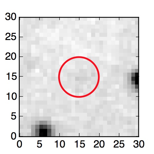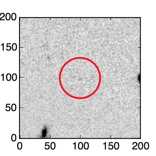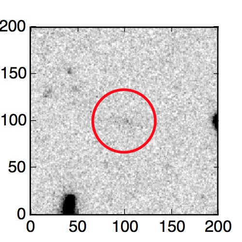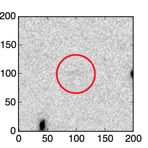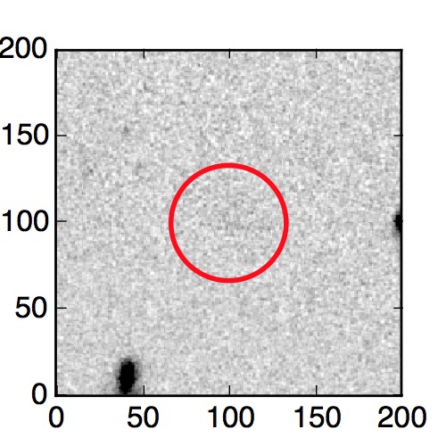 The red circle in the various panels is 1" in radius. The images are 6"x6".