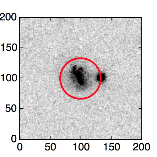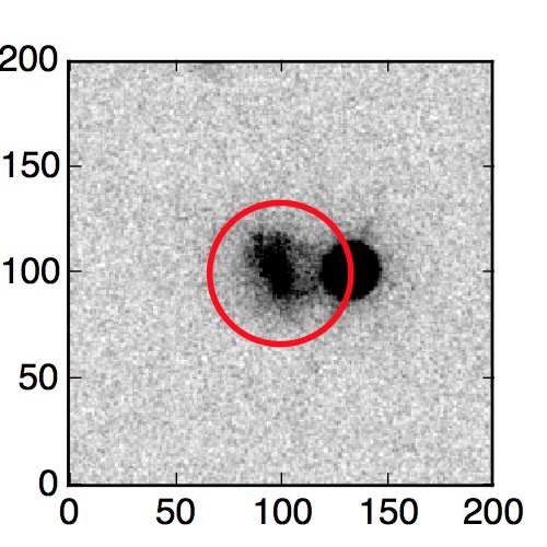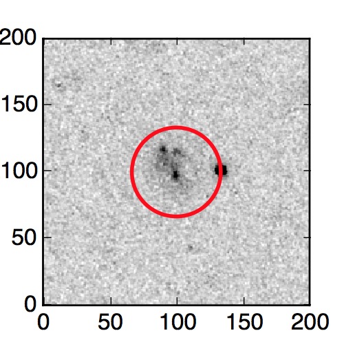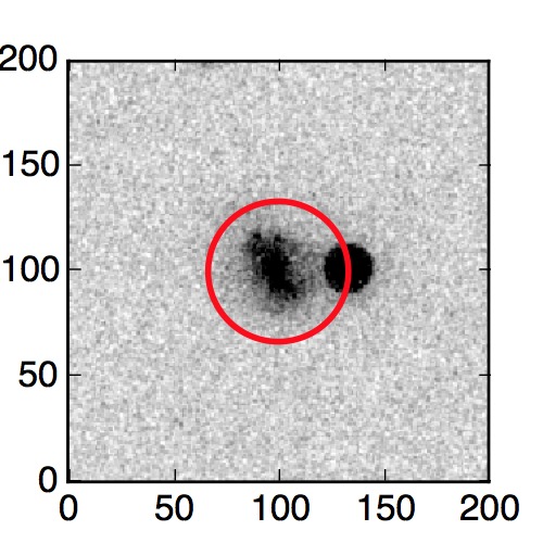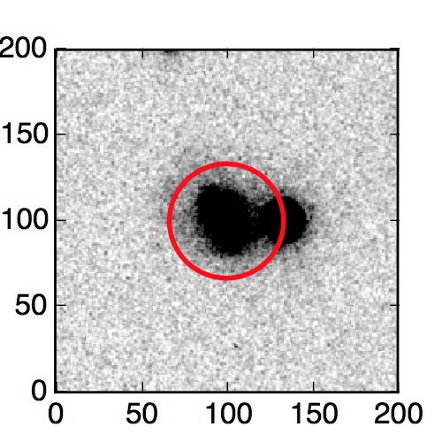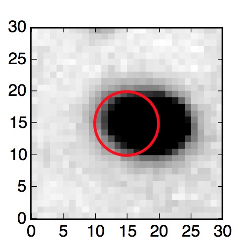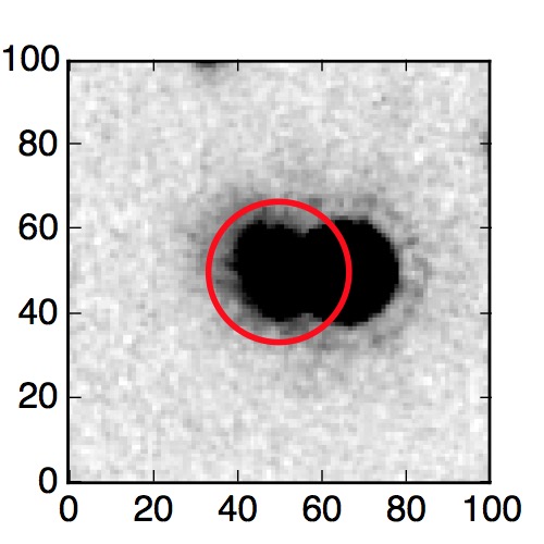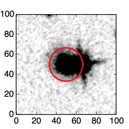 The red circle in the various panels is 1" in radius. The images are 6"x6".