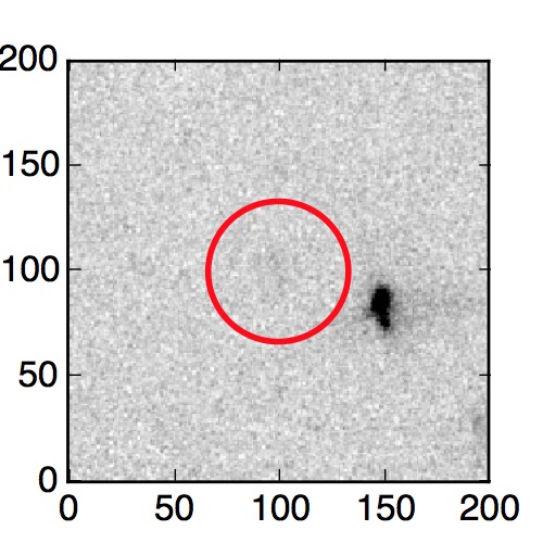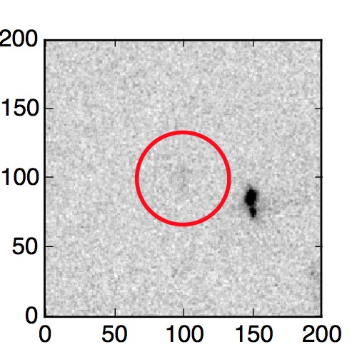 The red circle in the various panels is 1" in radius. The images are 6"x6".