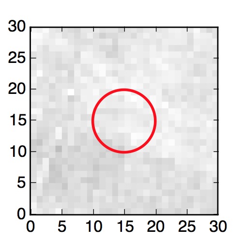 The red circle in the various panels is 1" in radius. The images are 6"x6".