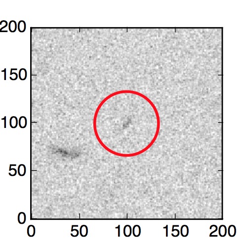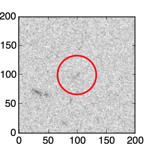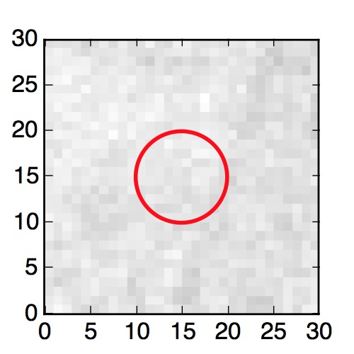 The red circle in the various panels is 1" in radius. The images are 6"x6".