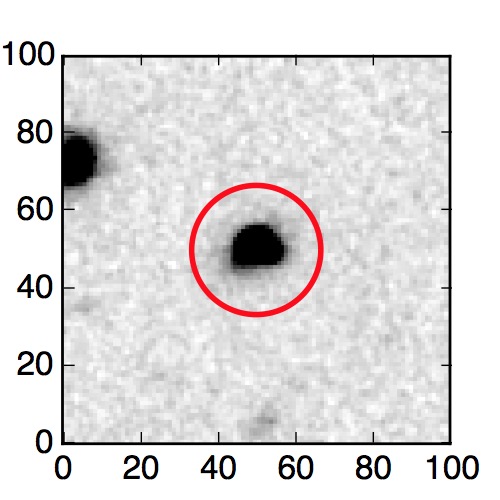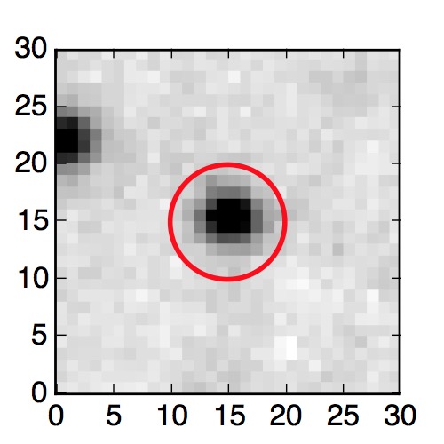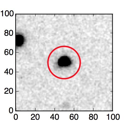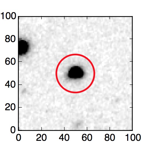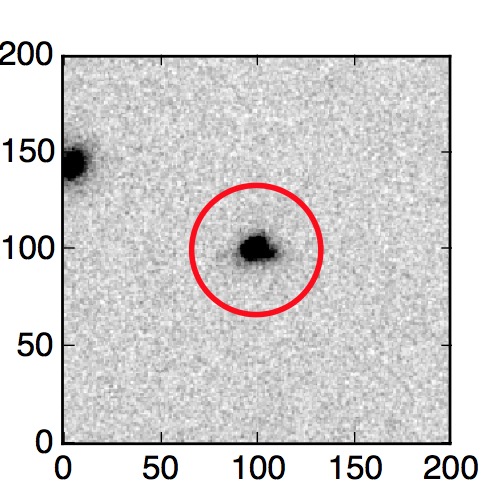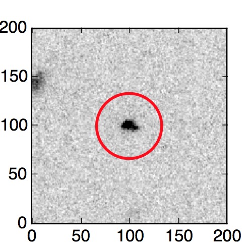 The red circle in the various panels is 1" in radius. The images are 6"x6".