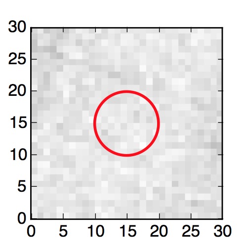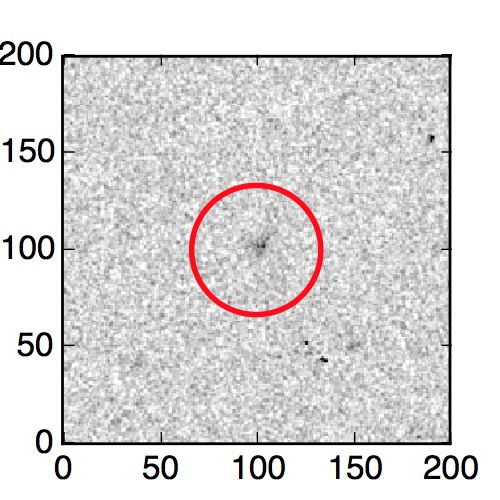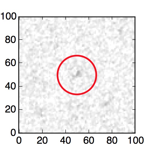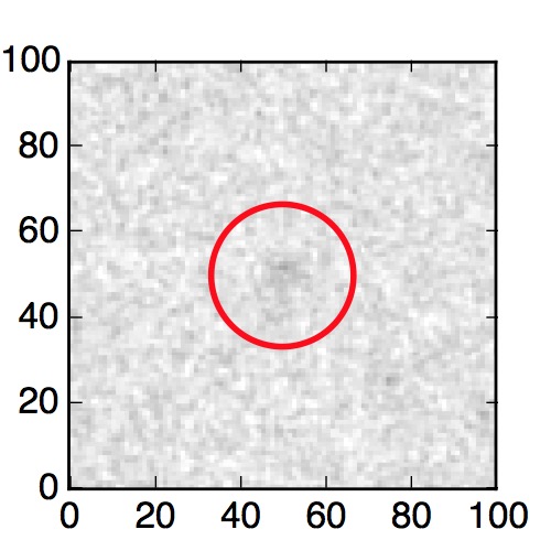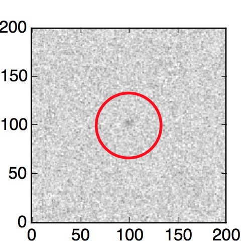 The red circle in the various panels is 1" in radius. The images are 6"x6".