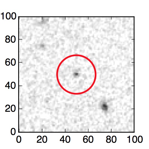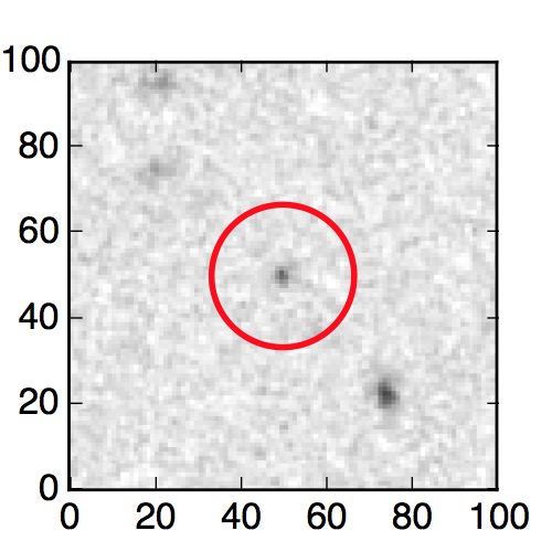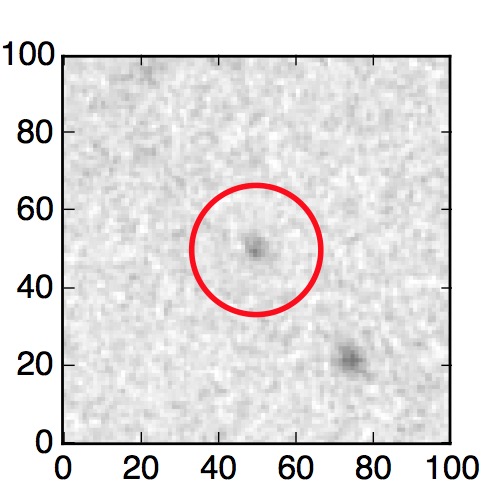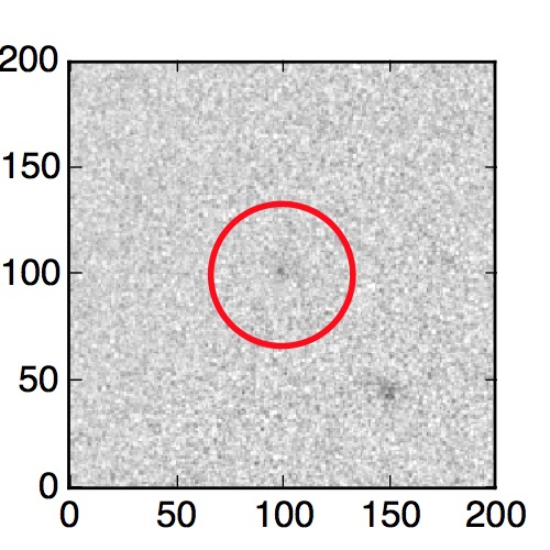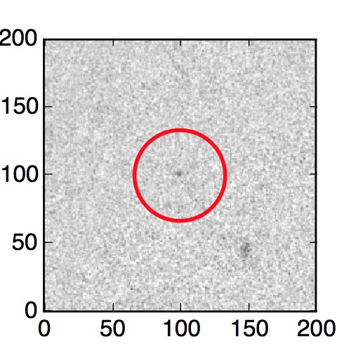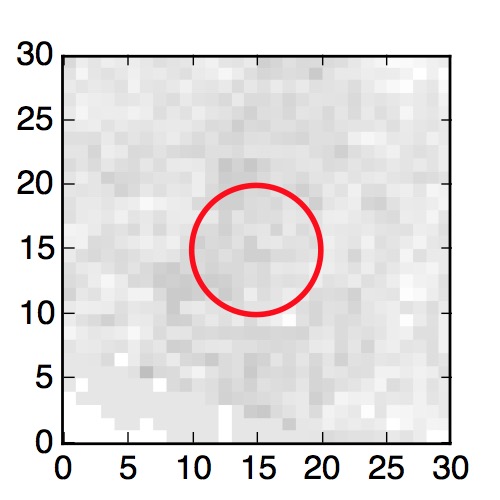 The red circle in the various panels is 1" in radius. The images are 6"x6".