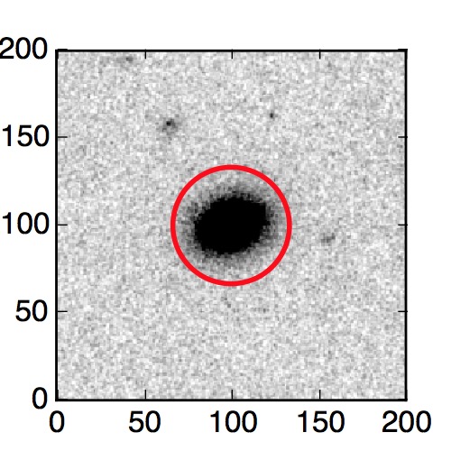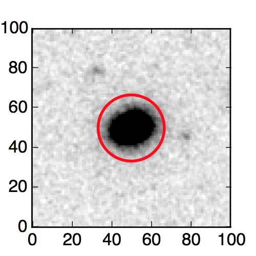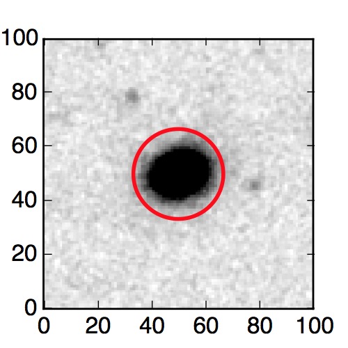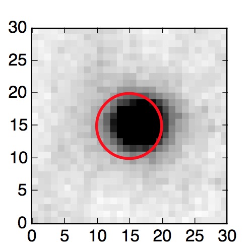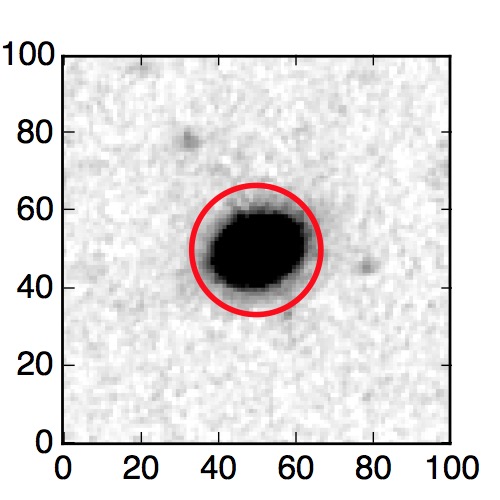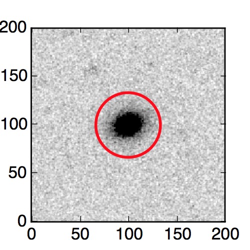The red circle in the various panels is 1" in radius. The images are 6"x6".