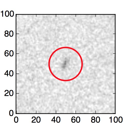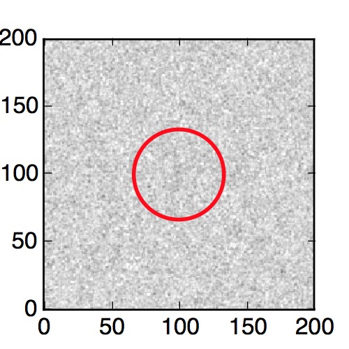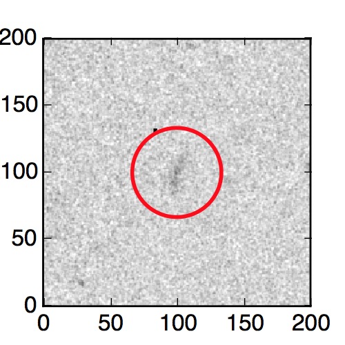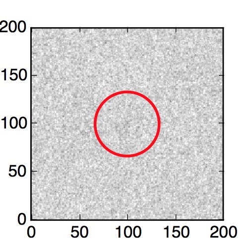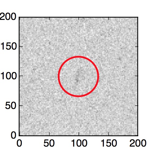 The red circle in the various panels is 1" in radius. The images are 6"x6".