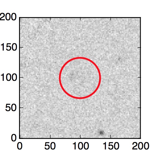 The red circle in the various panels is 1" in radius. The images are 6"x6".