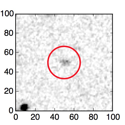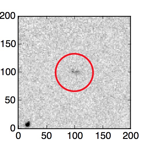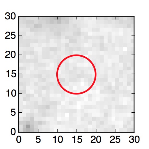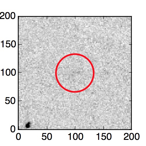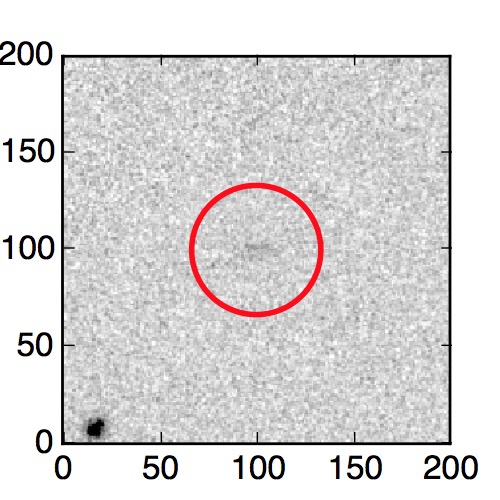 The red circle in the various panels is 1" in radius. The images are 6"x6".