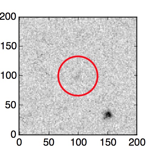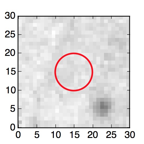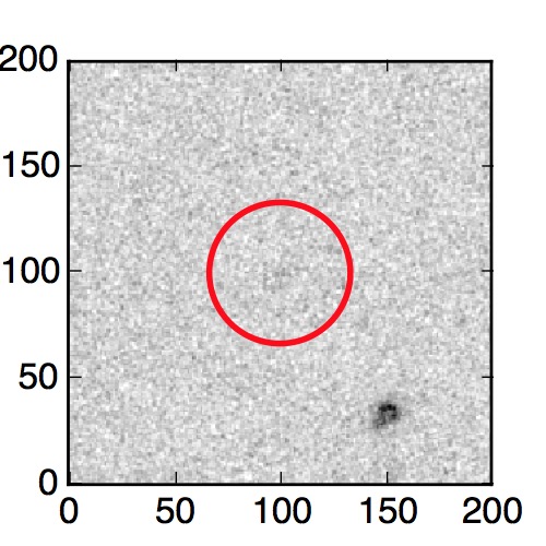 The red circle in the various panels is 1" in radius. The images are 6"x6".