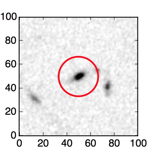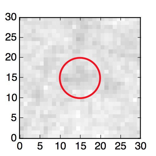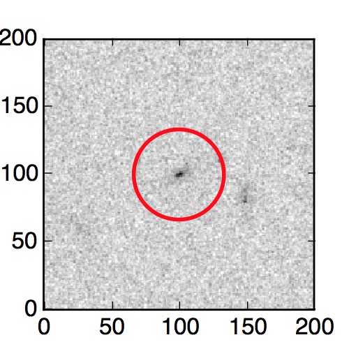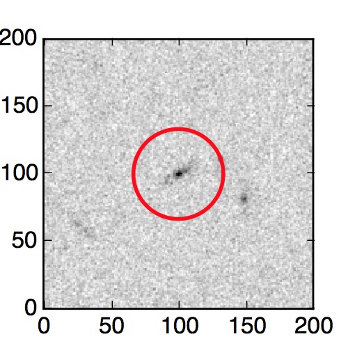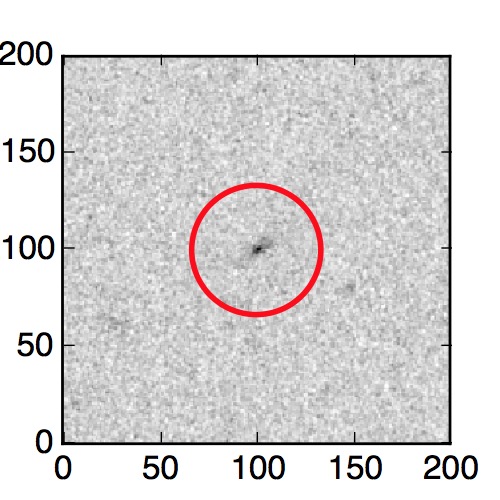 The red circle in the various panels is 1" in radius. The images are 6"x6".