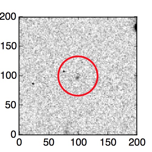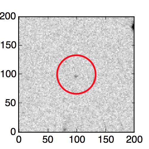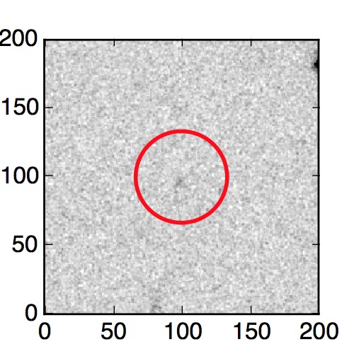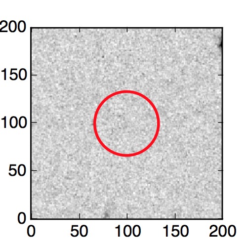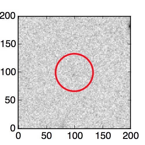 The red circle in the various panels is 1" in radius. The images are 6"x6".