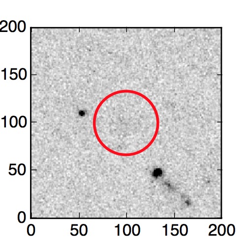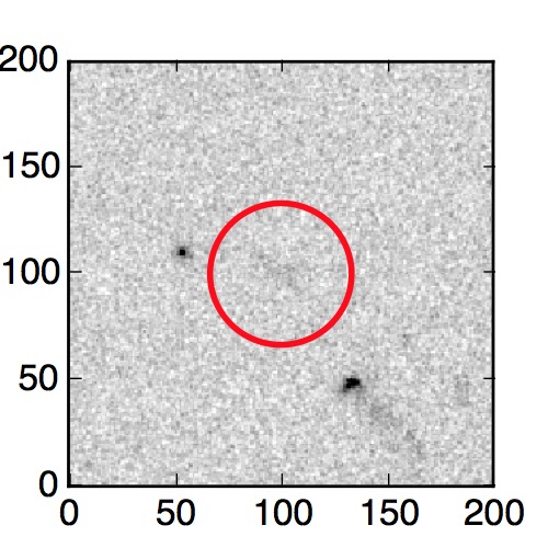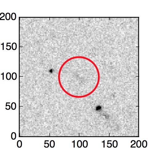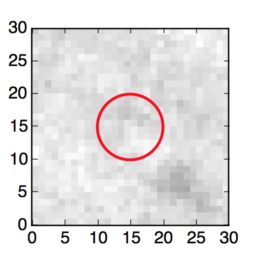 The red circle in the various panels is 1" in radius. The images are 6"x6".