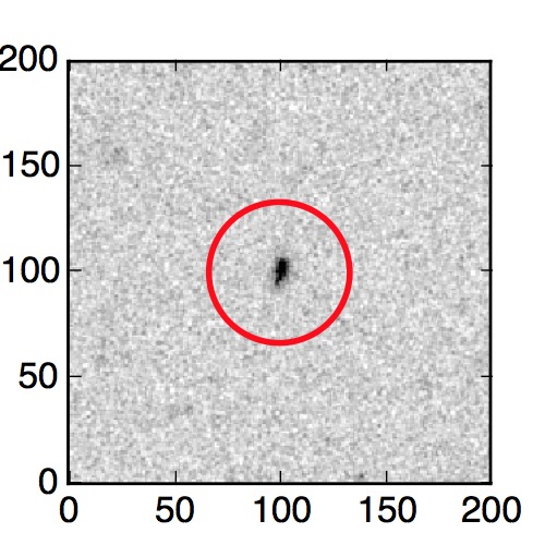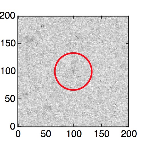 The red circle in the various panels is 1" in radius. The images are 6"x6".
