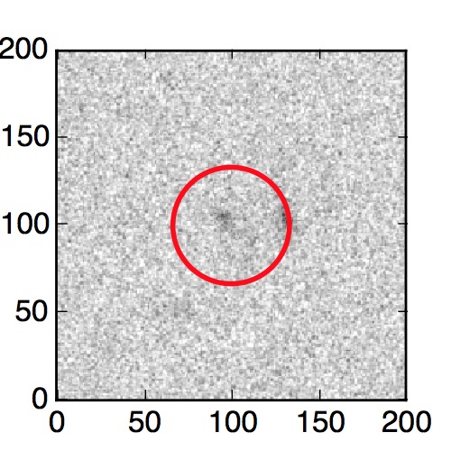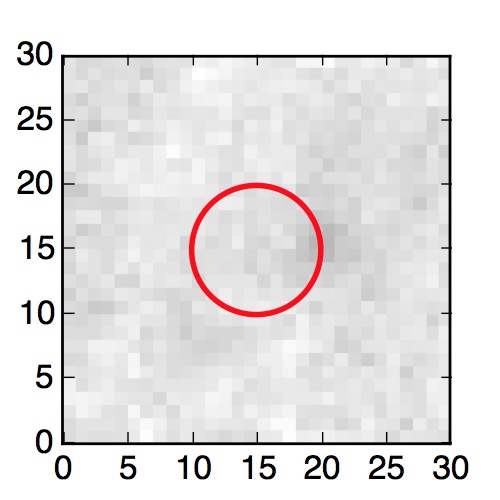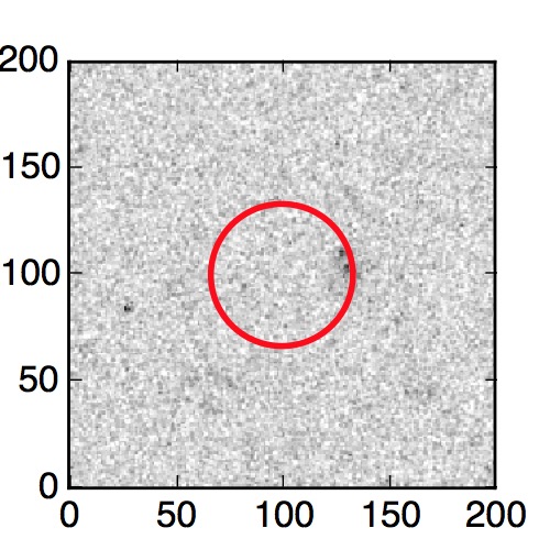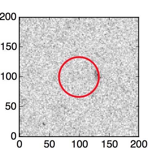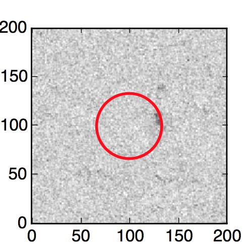 The red circle in the various panels is 1" in radius. The images are 6"x6".