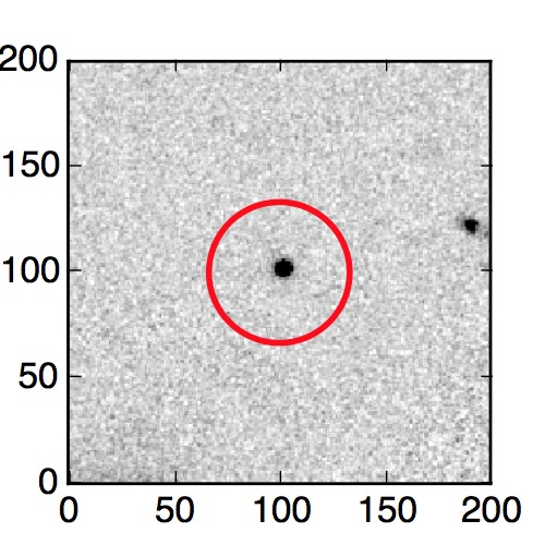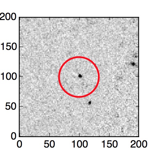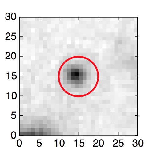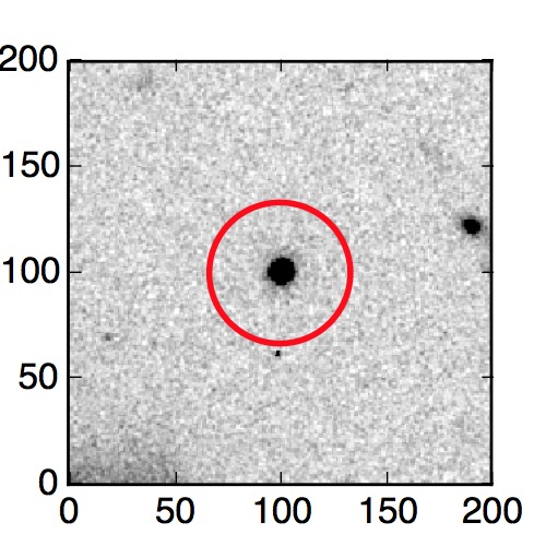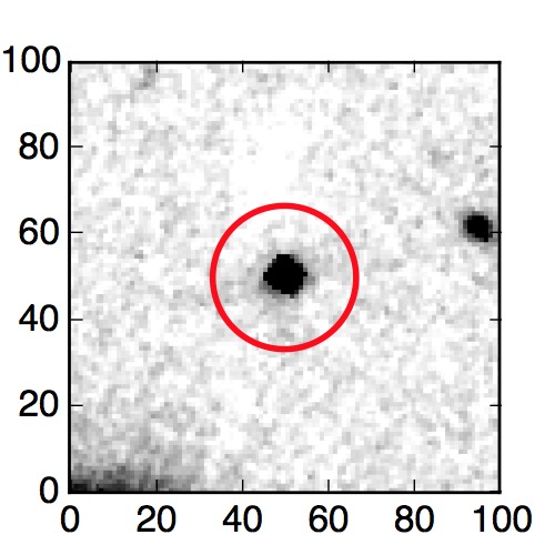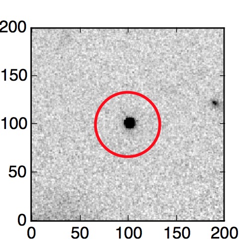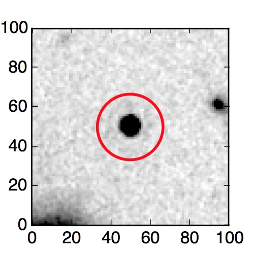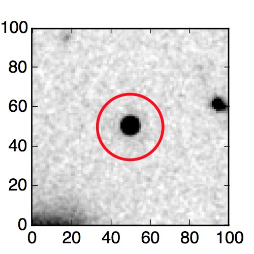 The red circle in the various panels is 1" in radius. The images are 6"x6".