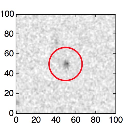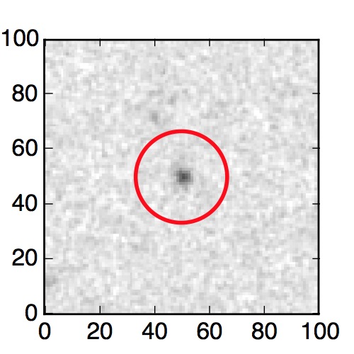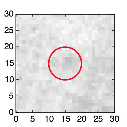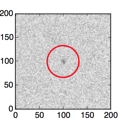 The red circle in the various panels is 1" in radius. The images are 6"x6".