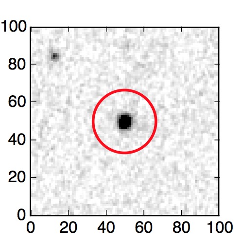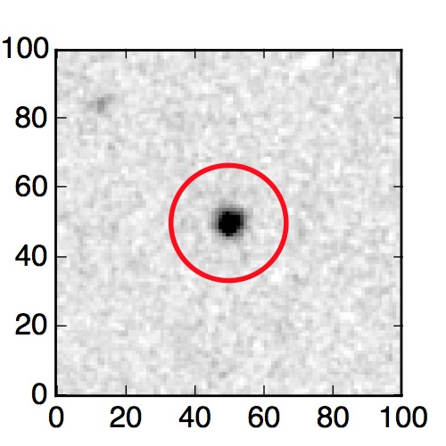 The red circle in the various panels is 1" in radius. The images are 6"x6".