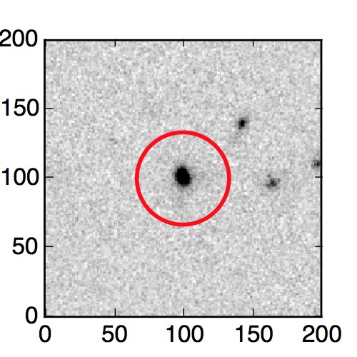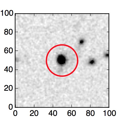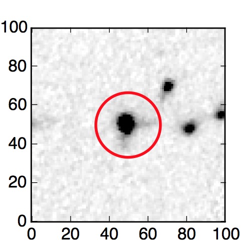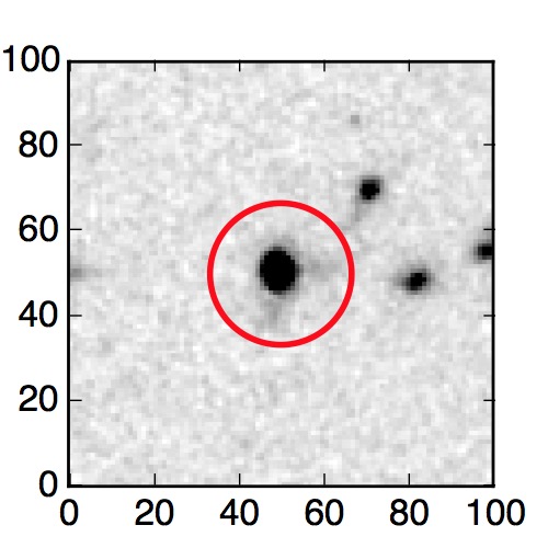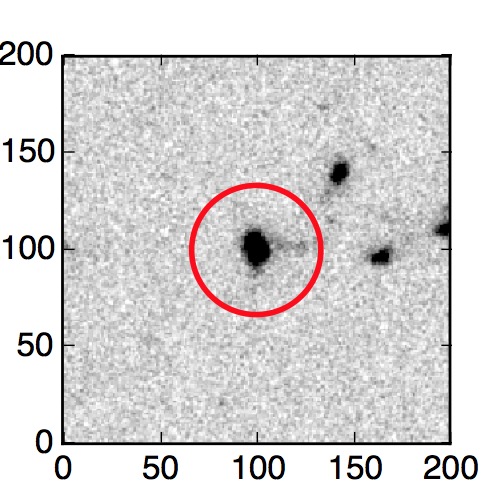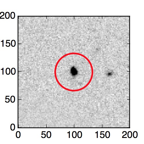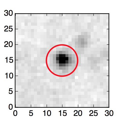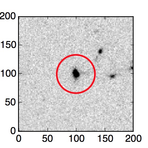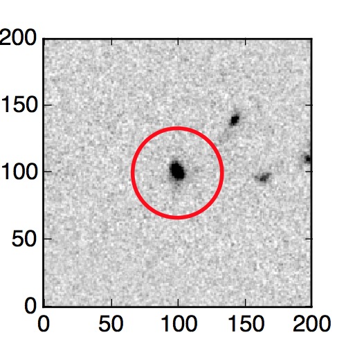 The red circle in the various panels is 1" in radius. The images are 6"x6".