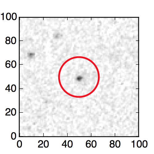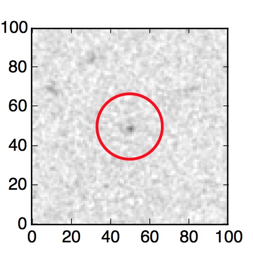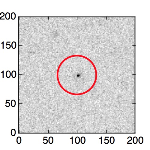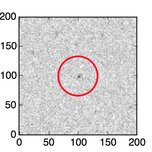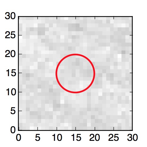 The red circle in the various panels is 1" in radius. The images are 6"x6".