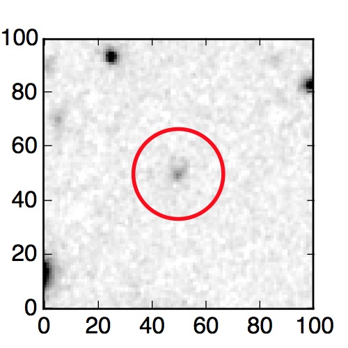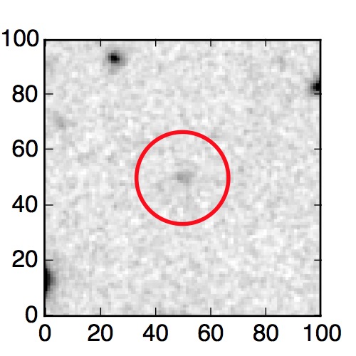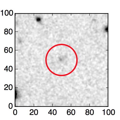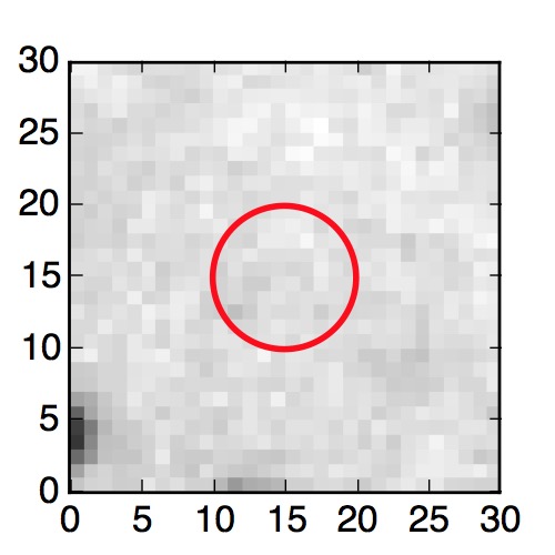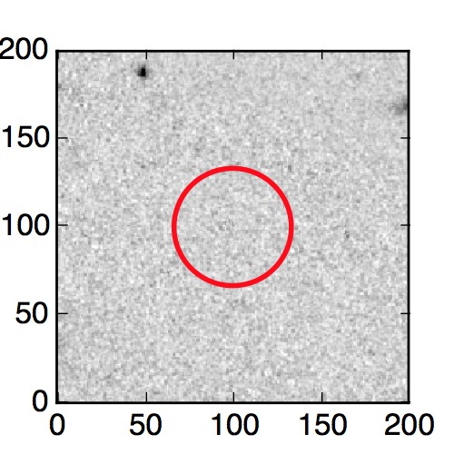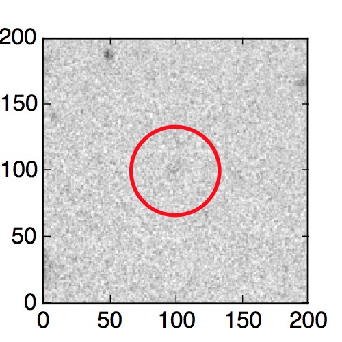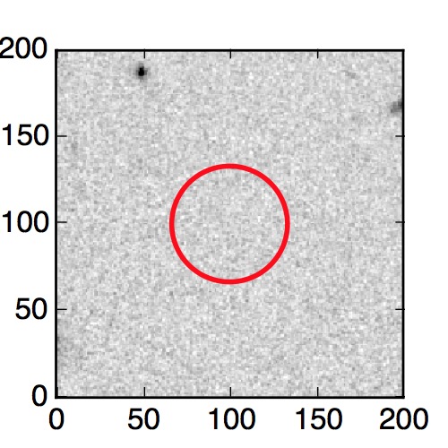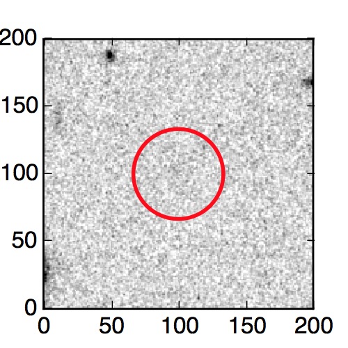 The red circle in the various panels is 1" in radius. The images are 6"x6".
