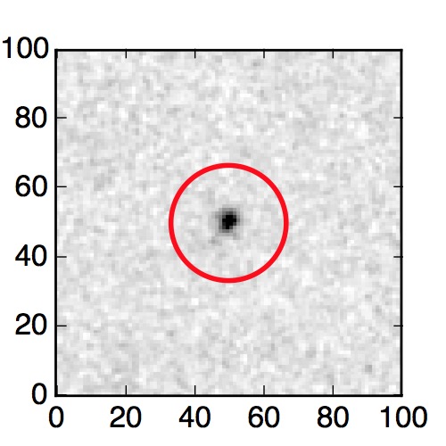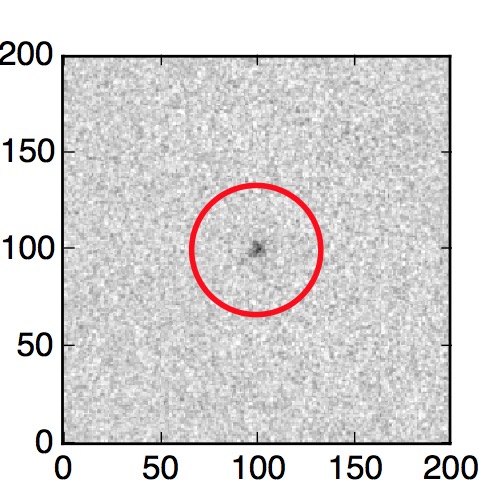 The red circle in the various panels is 1" in radius. The images are 6"x6".